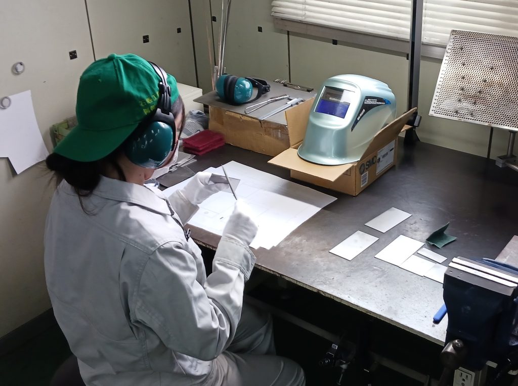 2日目はモノづくりに挑戦です。渡された図面をもとに製作開始!! まずは金属を加工。