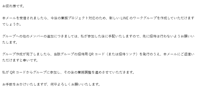 当社代表者含め個別にLINEグループの作成をお願いすることはありません。